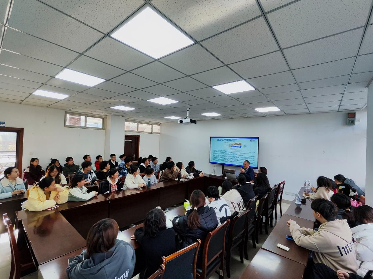 会议伊始,新加坡国立大学生物医学工程系李俊教授为学生详细介绍了新加坡国立大学的“3+1+1”联合培养项目。会上,李俊教授解读了该项目的申请条件、课程安排、相关费用等等,并详细介绍了新加坡国立大学在高质量培养人才方面的办学情况。在随后答疑环节中,李俊教授积极回答同学们关心的留学问题,为学生们海外升学和职业发展提供了意见建议,也为同学们提供了切实可行的学业方案和清晰明了的信息帮助。