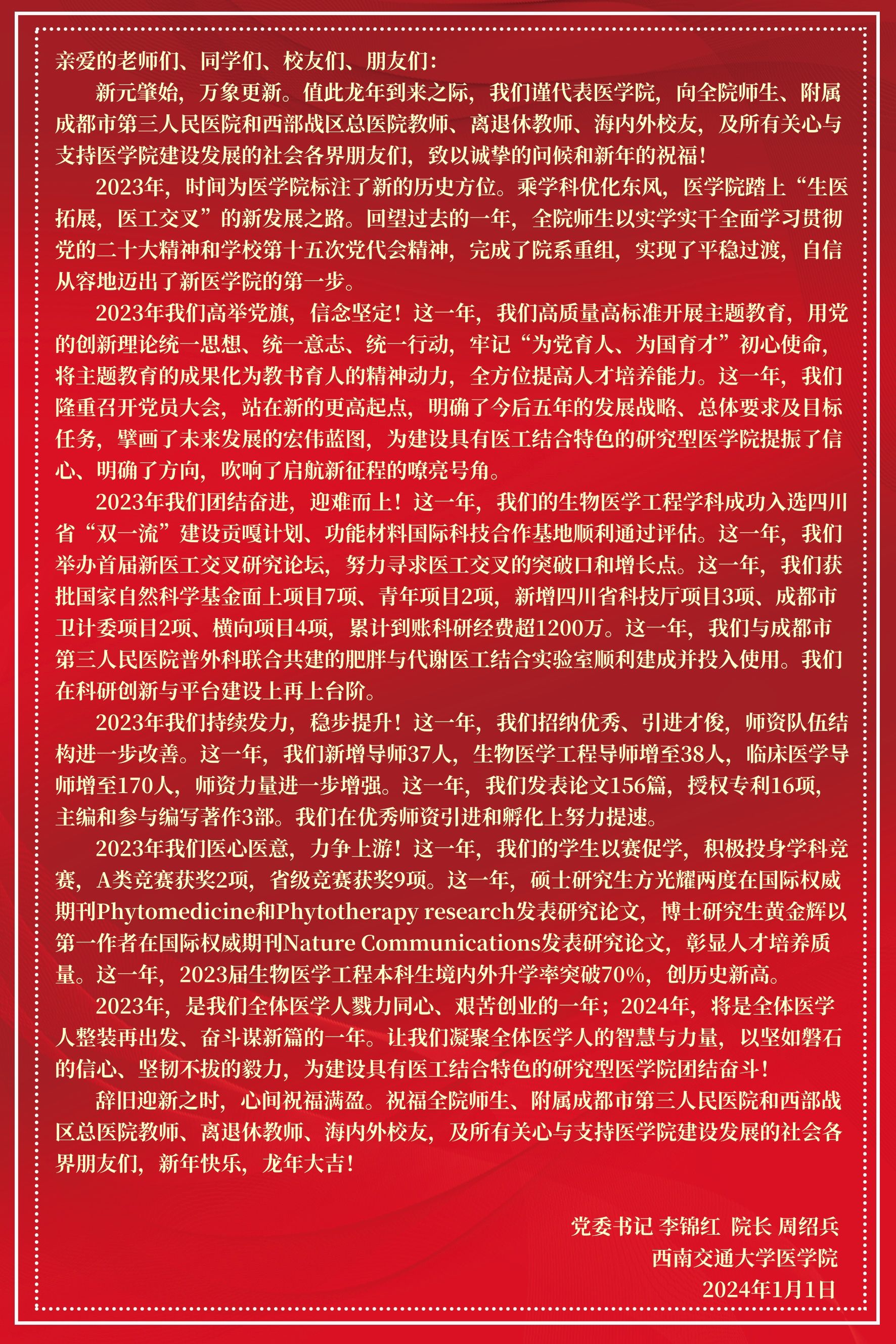 砥砺奋进,勇毅前行——医学院2024年新年贺词