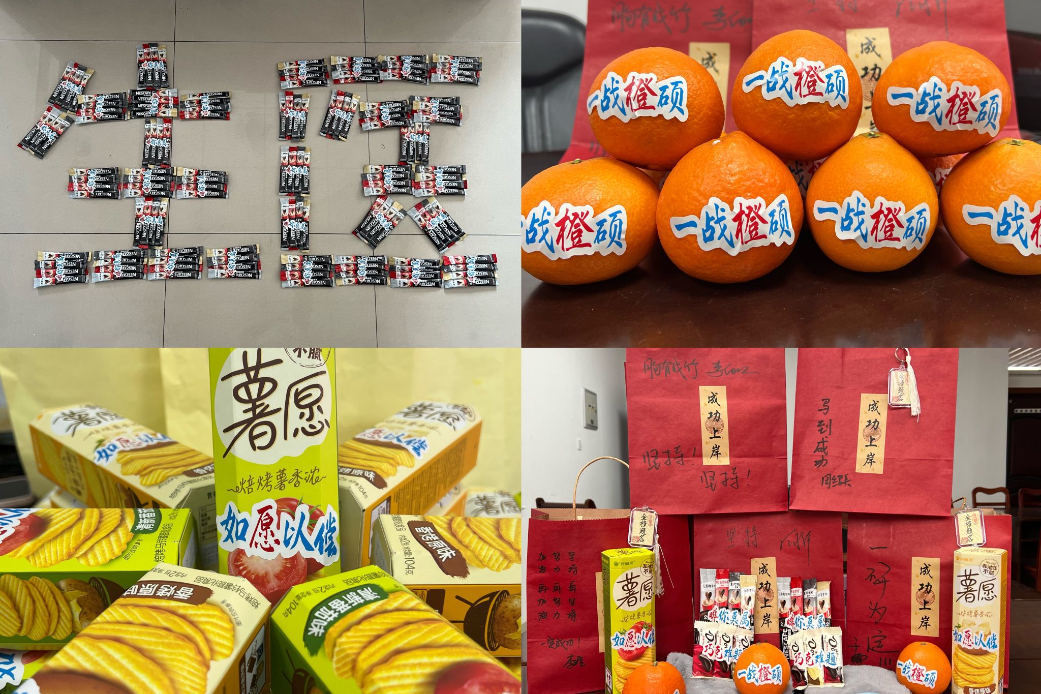 为了加强人文关怀,做好考研学生的加油鼓劲儿工作,帮助同学们以饱满的精神面貌和健康的身体状态迎接考试,医学院还为各位同学准备了“考研加油大礼包”。礼包中包含了暖水袋、橙子、咖啡、巧克力、薯片等,寓意一战“橙”硕、“啡”你莫属、“巧克”难题、如你所“愿”。更暖心的是,加油大礼包上的每一句祝福、鼓励,都是医学院老师们亲笔写下,传达的是老师们对考研学子的深情祝福,祝愿各位同学能够成功上岸,金榜题名。