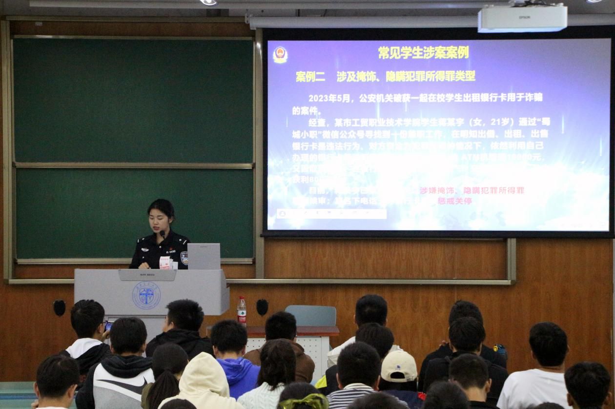 在前期完成7项新生入学教育专题的基础上,10月13日晚19:00,为增强学生们的安全意识,提高防诈意识,同时提升突发事件应急能力,学院邀请到犀浦校园路派出所刘警官和我校保卫处曹老师在x4153为2023级同学们开展学生安全教育及防范电信网络诈骗专题教育。刘警官为向学生们详细介绍了相关的法律法规和常见的电信网络诈骗手段,如假冒“班主任”“学校领导”“辅导员”等特殊身份进行诈骗,声称遇到“意外事故”“突发事件”急需家长、亲朋好友汇钱解困进行诈骗等等;曹老师对如何预防消防事故以及面对火灾的正确救灾逃生方式进行了全面讲解。通过刘警官和曹老师的讲解,不仅提高了学生们的网络安全意识,也增强了他们的自我保护能力。