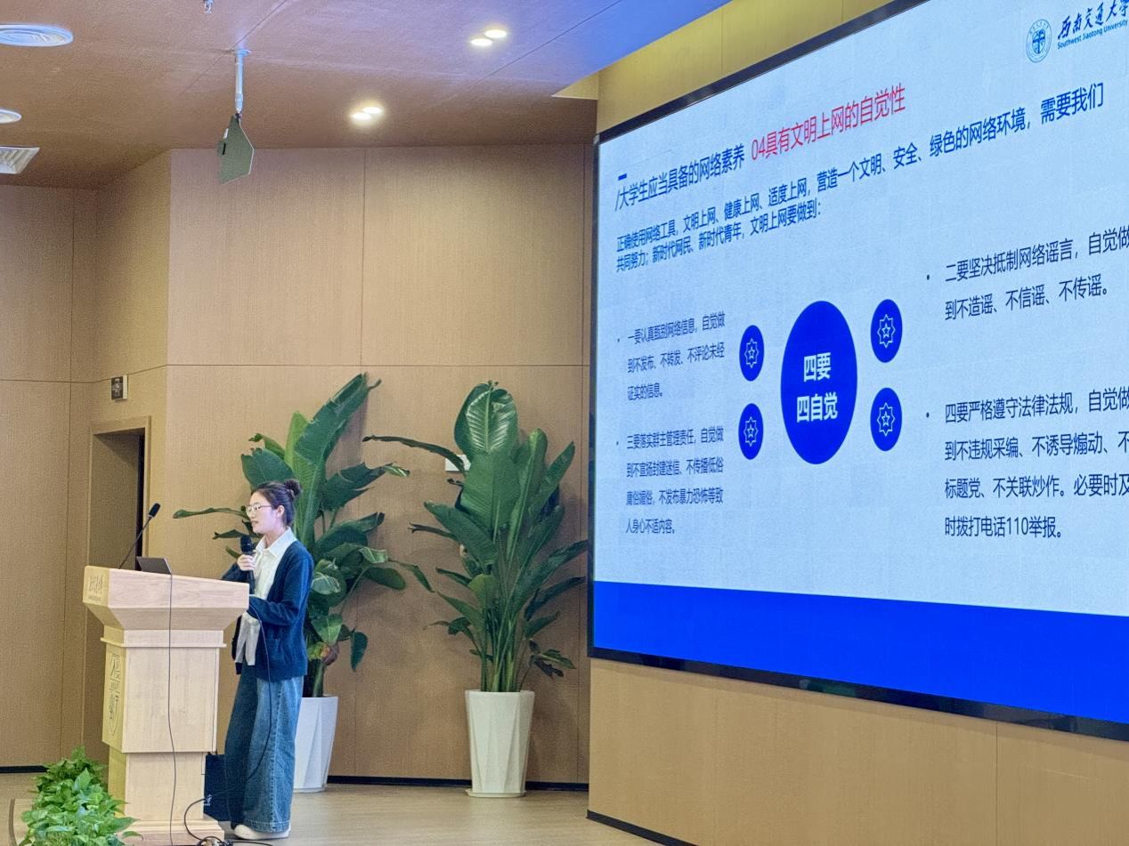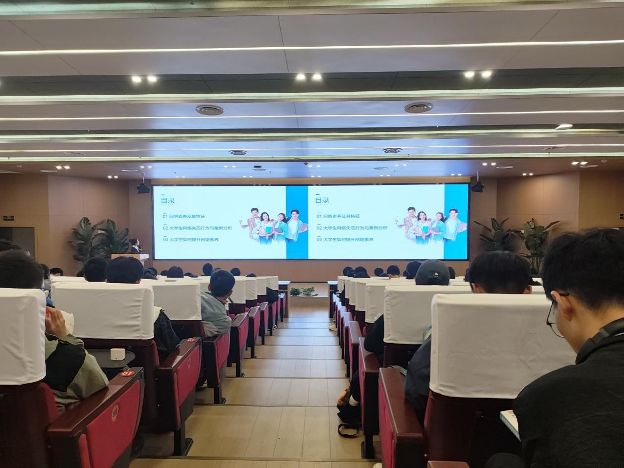 11月10日下午16:30,为提升同学们的网络素养及道德规范,培养同学们具备应有的网络信息辨别能力,我院辅导员王川玲于图书馆一号报告厅为同学们开展网络素养专题教育。此次专题教育中,王老师从网络素质及其特征、大学生网络失范行为与案例分析、大学生该如何提升网络素养三个方面为同学们一一讲解,引导同学们正确认识和使用网络,增强同学们的信息辨别能力,提高同学们的网络安全意识。通过此次网络素养教育,同学们更加全面地了解了网络,明白了应该更加规范、合理、理性地使用网络。