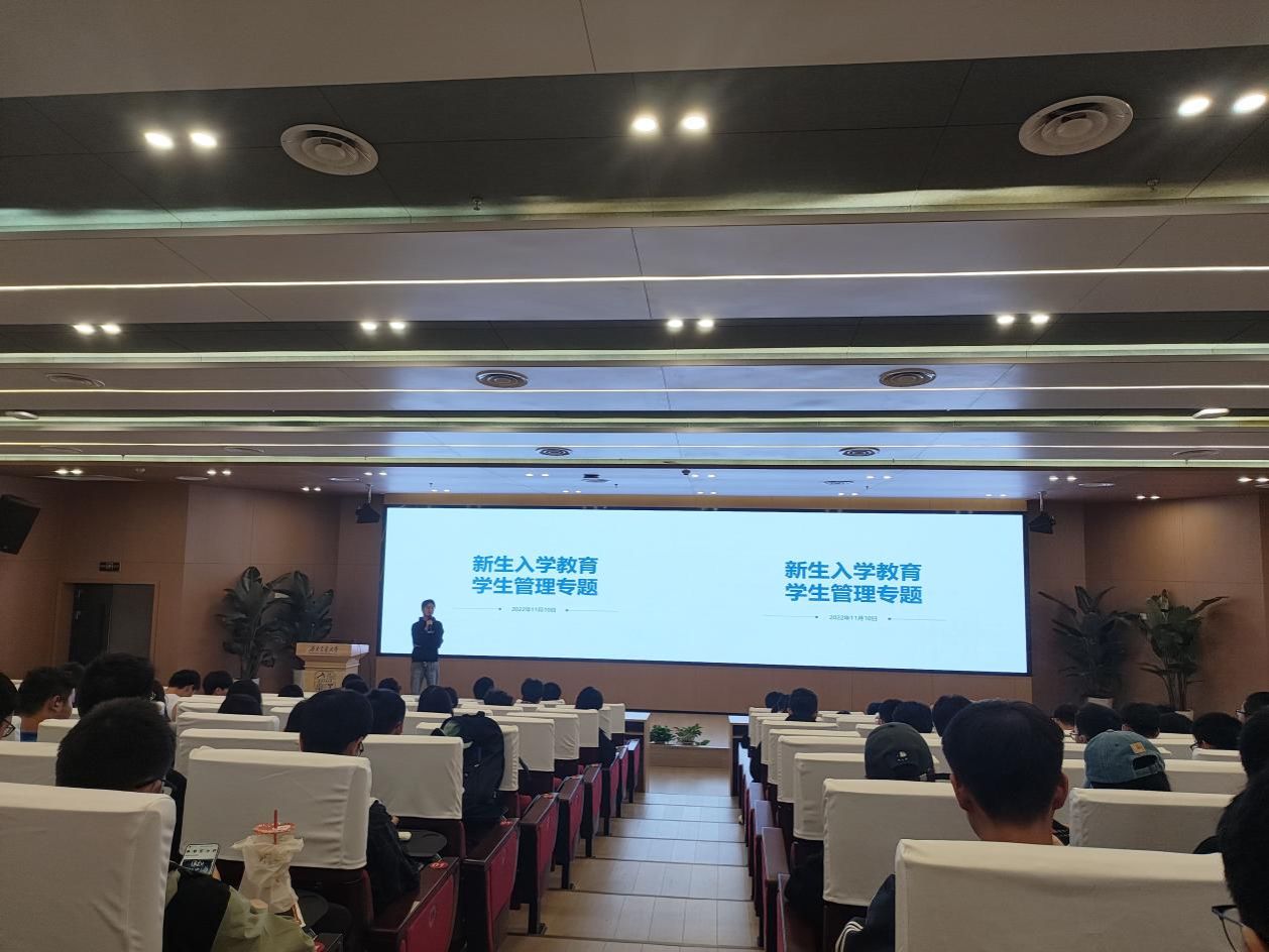 11月10日下午15:30,为使同学们全面掌握学校各项规章制度,明确学生的责任、权利和义务,养成良好的行为习惯,学院邀请到化学学院辅导员李威老师于图书馆一号报告厅为同学们开展学生管理专题的新生教育。宣讲中,李威老师详细为大家讲解了学校的各项规章制度和学生日常管理工作的重点,如评奖评优,宿舍安全管理等等,并向同学们说明了其在日常学习和生活中应尽的责任和义务以及所拥有的权利,使同学们更加深入地了解了校园内的规章制度,同时鼓励同学们养成良好的学习和生活习惯,为今后健康学习生活奠定了基础。