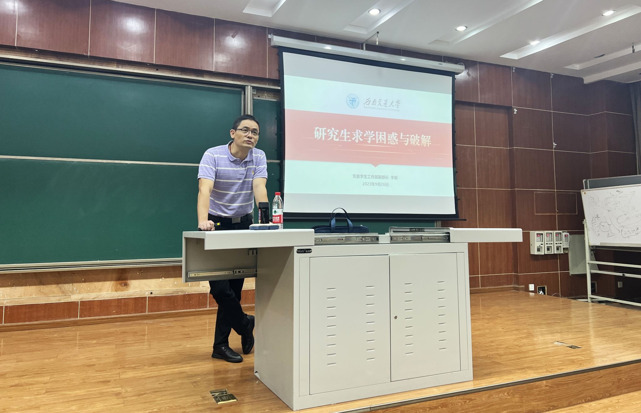 9月26日晚19:30,九里校区J4104,党委学生工作部李毅副部长受邀与医学院2023级研究生学子交流交大人的研究生之旅。
