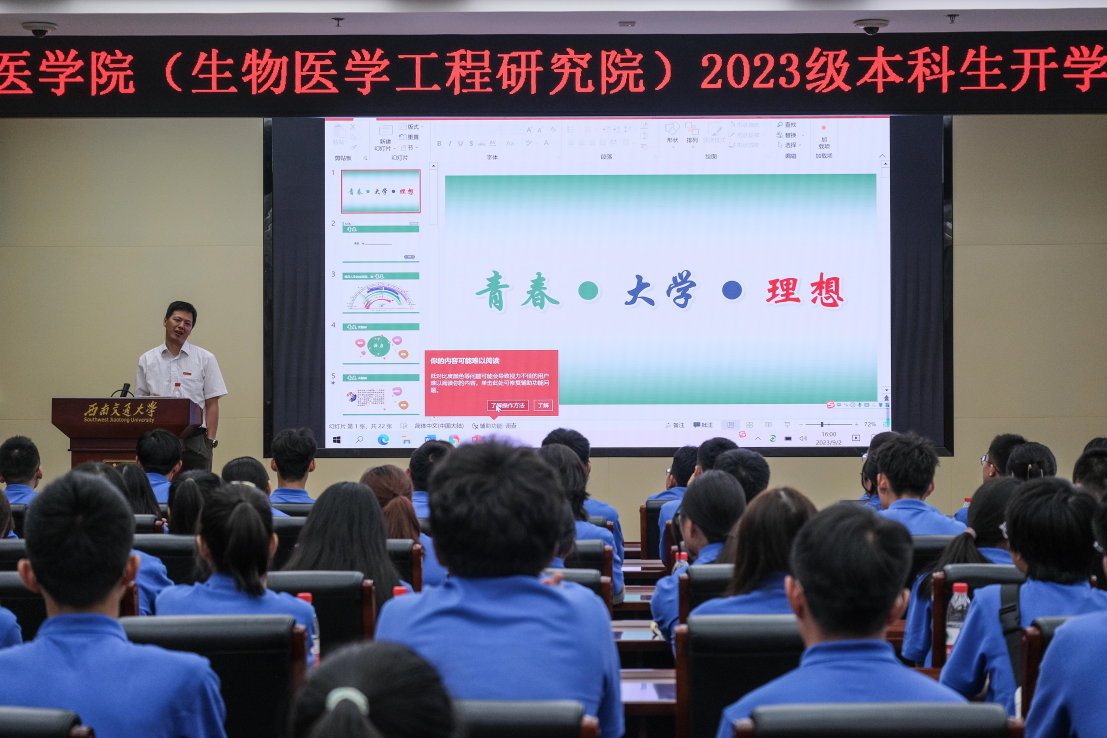 9月2日下午3时,医学院2023级本科生开学典礼在综合楼148隆重举行。医学院院长周绍兵、党委书记李锦红、医学院副院长冷永祥、2023级本科生班主任、老师、辅导员以及亲友出席典礼。典礼由医学院党委副书记于楠主持。