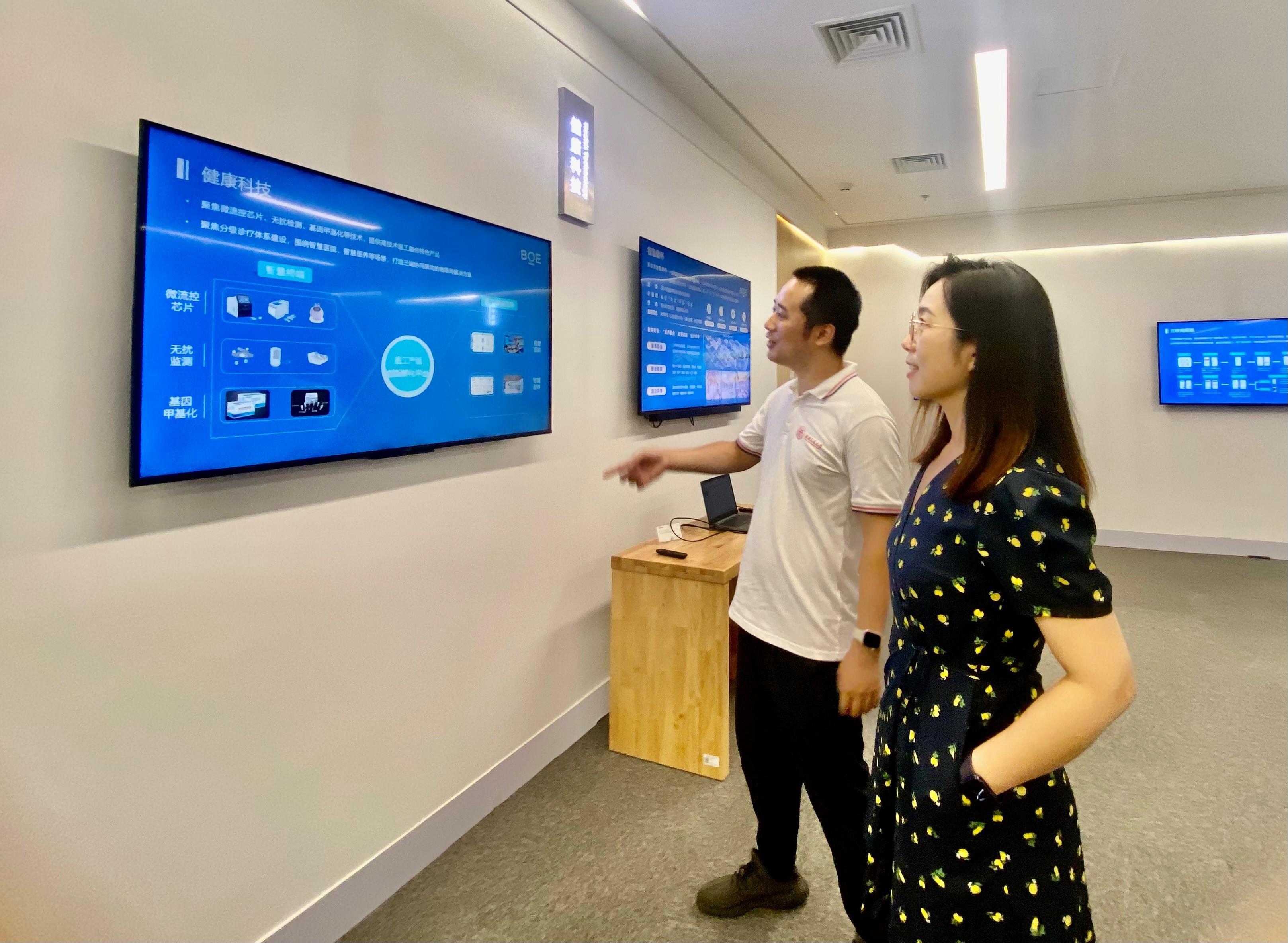 下午,医学院学工组一行参观了成都京东方医院的行政大楼、智慧医疗系统、智慧病房以及成都天府生物城展厅,工作人员对其智慧医疗、医疗设备、医疗流程等展开了介绍。会后,相关人员对京东方智慧医工人才体系建设与培养进行了讲解,并进行了进2小时的校企洽谈,主要包括京东方医院整体介绍、京东方智慧医工校园品牌活动分享、优秀校友分享以及友好交流等。