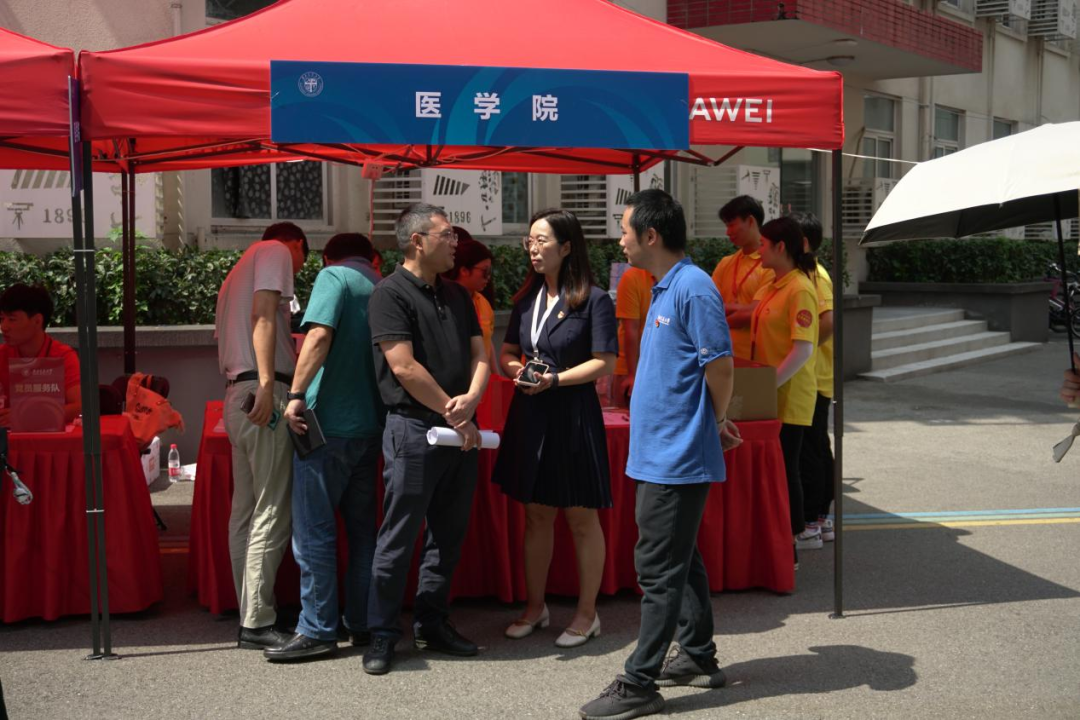 医学院党委书记李锦红、院长周绍兵、副院长冷永祥在九里校区迎新点看望了学院迎新工作队伍。学院领导与新生们亲切互动,传达对同学们的祝福与鼓励,与新同学们共同分享这个喜悦的时刻。