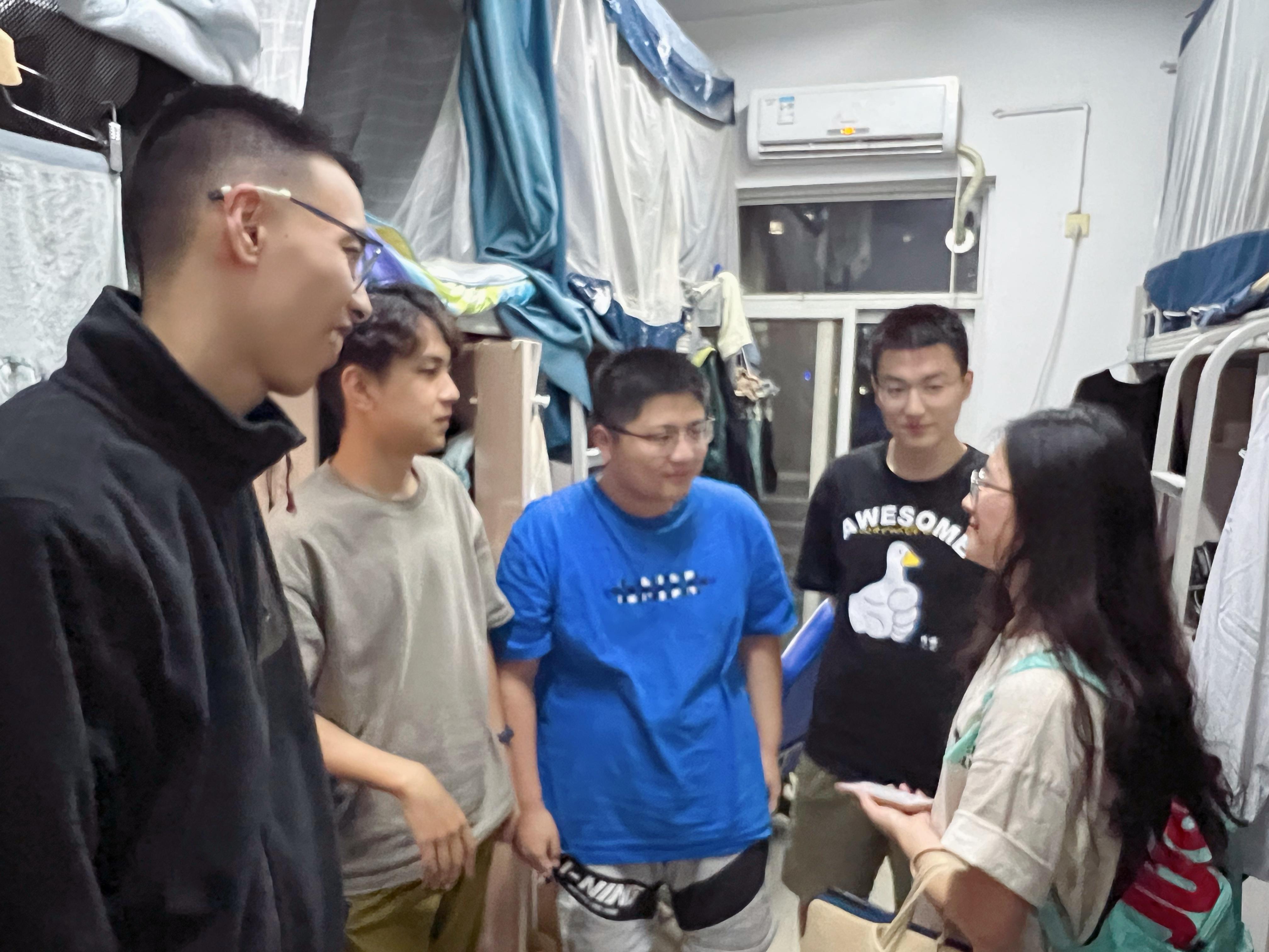 随后,领导和老师一行又来到了眷诚斋10栋5楼的医学院毕业班女生宿舍。周绍兵院长、李锦红书记关切地询问了每一位毕业生的就业情况,她们中有留在三医院、六医院等继续规培的、有考博升学的、有正在考公的,学院领导对毕业生们有清晰的职业规划和好的毕业出路表示非常欣慰。李毅副部长与同学们也进行了亲切交流,对医学院同学们在校园疫情防控中做出的突出贡献表达了感谢,也听取了同学们对校园文化生活、食堂宿舍环境等方面的意见和建议,并表示学校非常珍惜同学们提出的宝贵意见和建议,也将大力改善、优化九里校区校园环境,为同学们提供更舒适的学习生活空间。