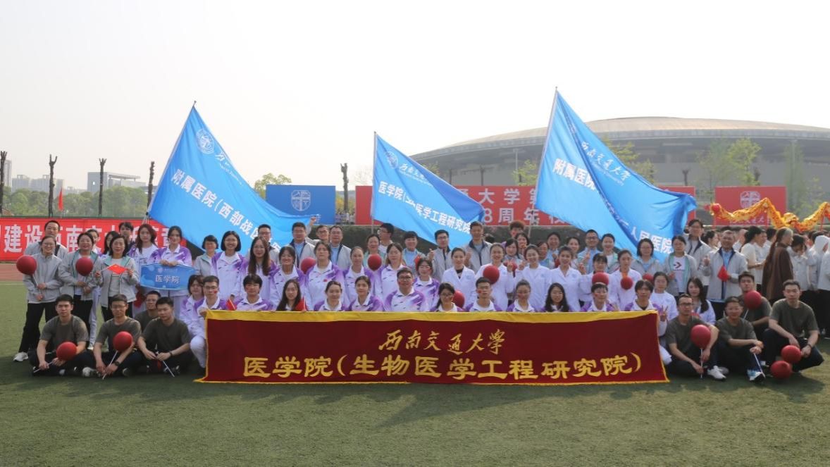 4月12日上午,西南交通大学第123届运动会暨建校128周年校庆运动会开幕式于犀浦校区北区体育场隆重开幕。西南交通大学医学院和附属医院成都市第三人民医院、西部战区总医院师生组成方阵参加了此次运动会。