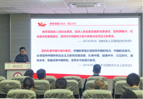 随后,冷永祥副院长结合个人学习主题教育指定书目《习近平新时代中国特色社会主义思想专题摘编》中关于“科技、教育、人才”专题的学习体会,围绕“科教融合与医学院研究生培养的若干思考”作了报告。他强调,科教融合是世界一流大学的核心办学理念,也是中国大学发展的必然选择。冷永祥副院长就医学院科教融合的发展现状、困惑难题、改革措施等方面做了深入的分析与探讨。