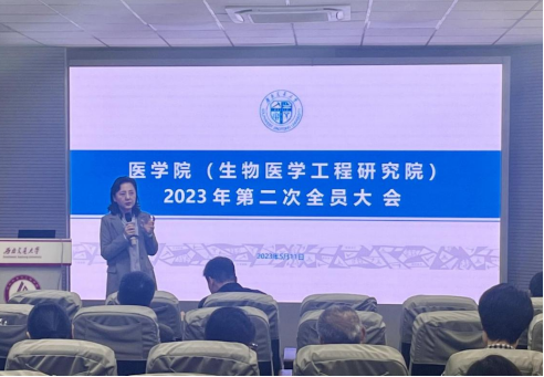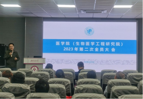 本次全院教职工大会暨主题教育专题学习会,是医学院学习贯彻习近平新时代中国特色社会主义思想主题教育方案落实的重要一环。同时,大会对过去一段时间的工作进行了全面总结,也对未来的工作指明了方向,大会激励全体教职工在建设具有医工结合特色、研究型医学院的征程上,不断谱写新篇章。