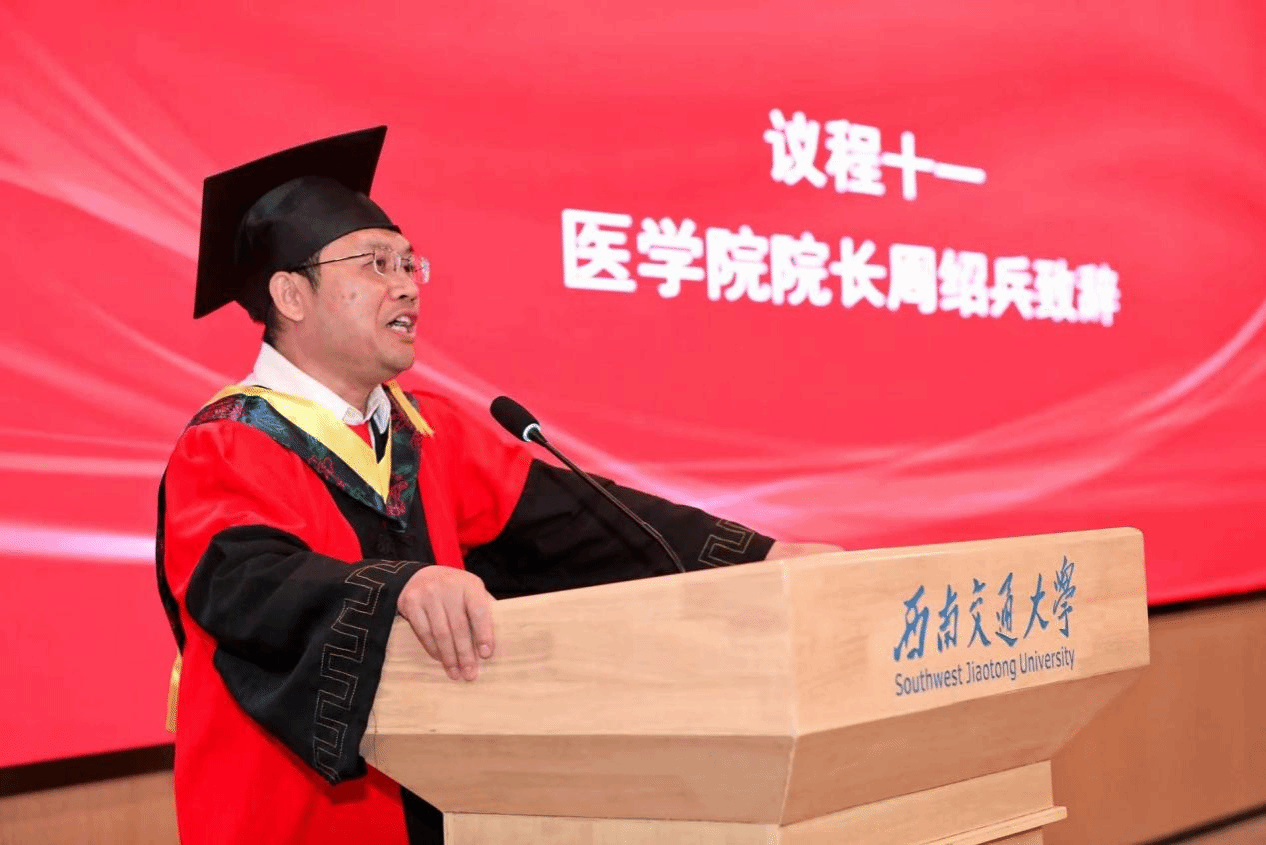 学院院长周绍兵发表了热情洋溢的致辞。他首先向毕业生们表示热烈的祝贺,并对他们在校期间所取得的成就表示了高度的赞扬。随后,他回顾了医学院的发展历程和取得的成就,并鼓励毕业生们要勇于创新、敢于实践,为社会的发展贡献自己的力量!