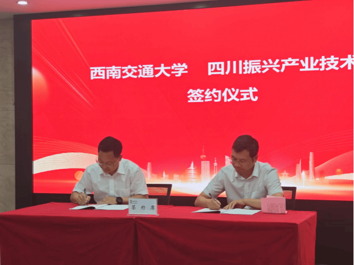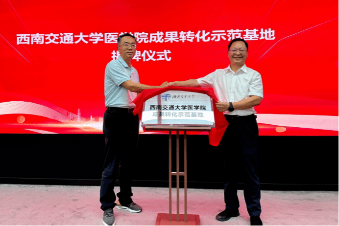 在双方共同见证下,周绍兵与吴定华分别代表西南交大与四川振兴产研院签署了合作协议,张兴博与赵其春共同为四川生物医学产业技术研究院揭牌,王正彬与吴定华共同为西南交通大学医学院成果转化示范基地揭牌。