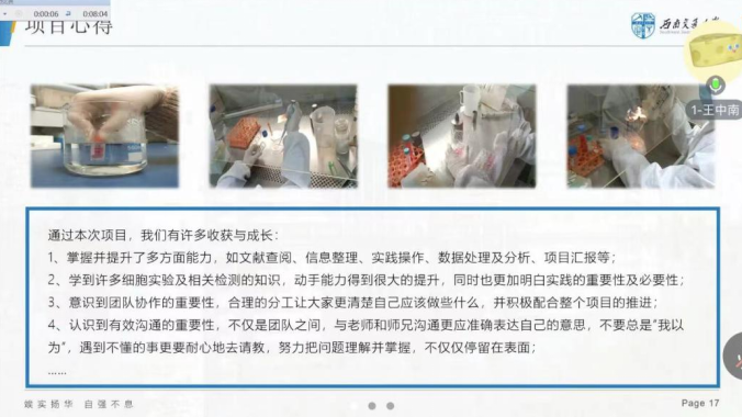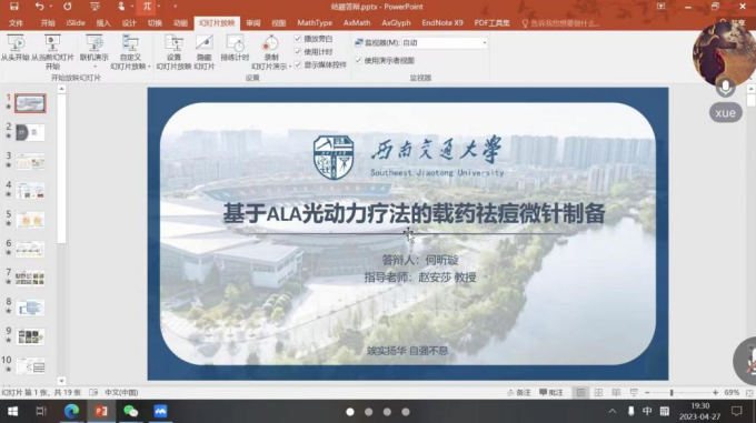4月27日19:00,医学院生物医学工程专业本科生SRTP(大学生创新创业训练计划)答辩如期举行。本次答辩被分为两组,全程在线上进行。