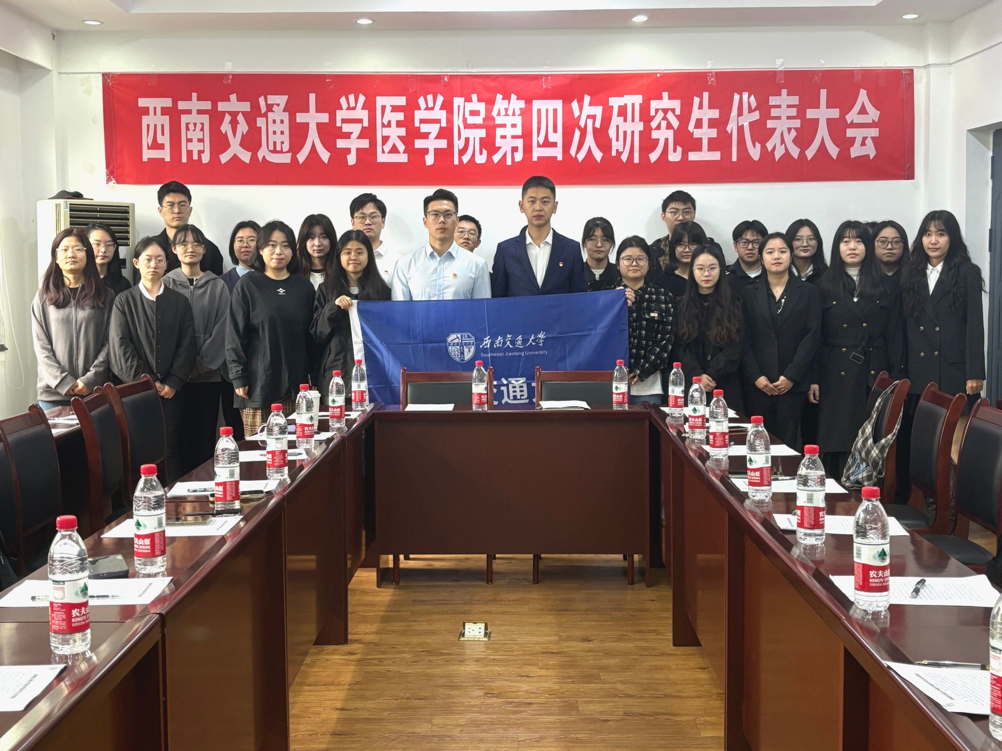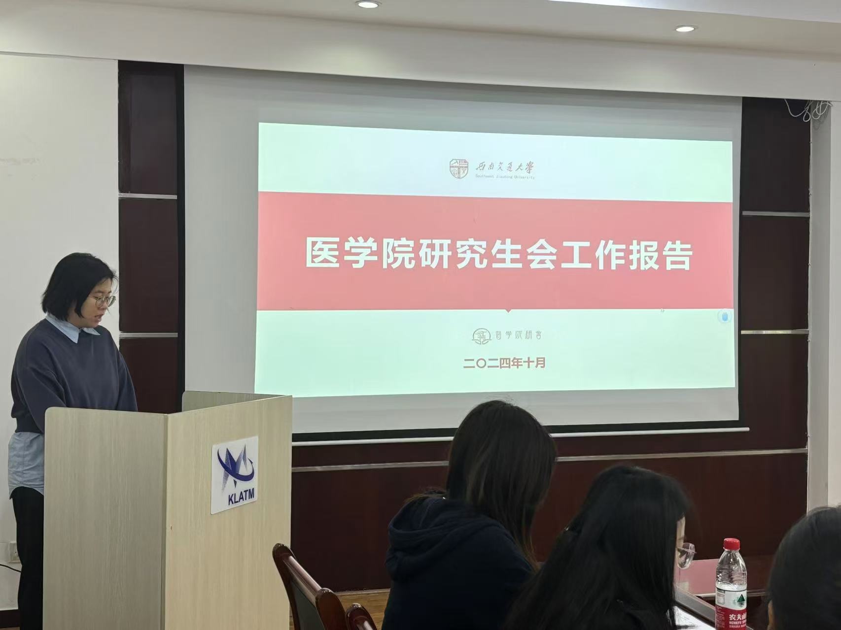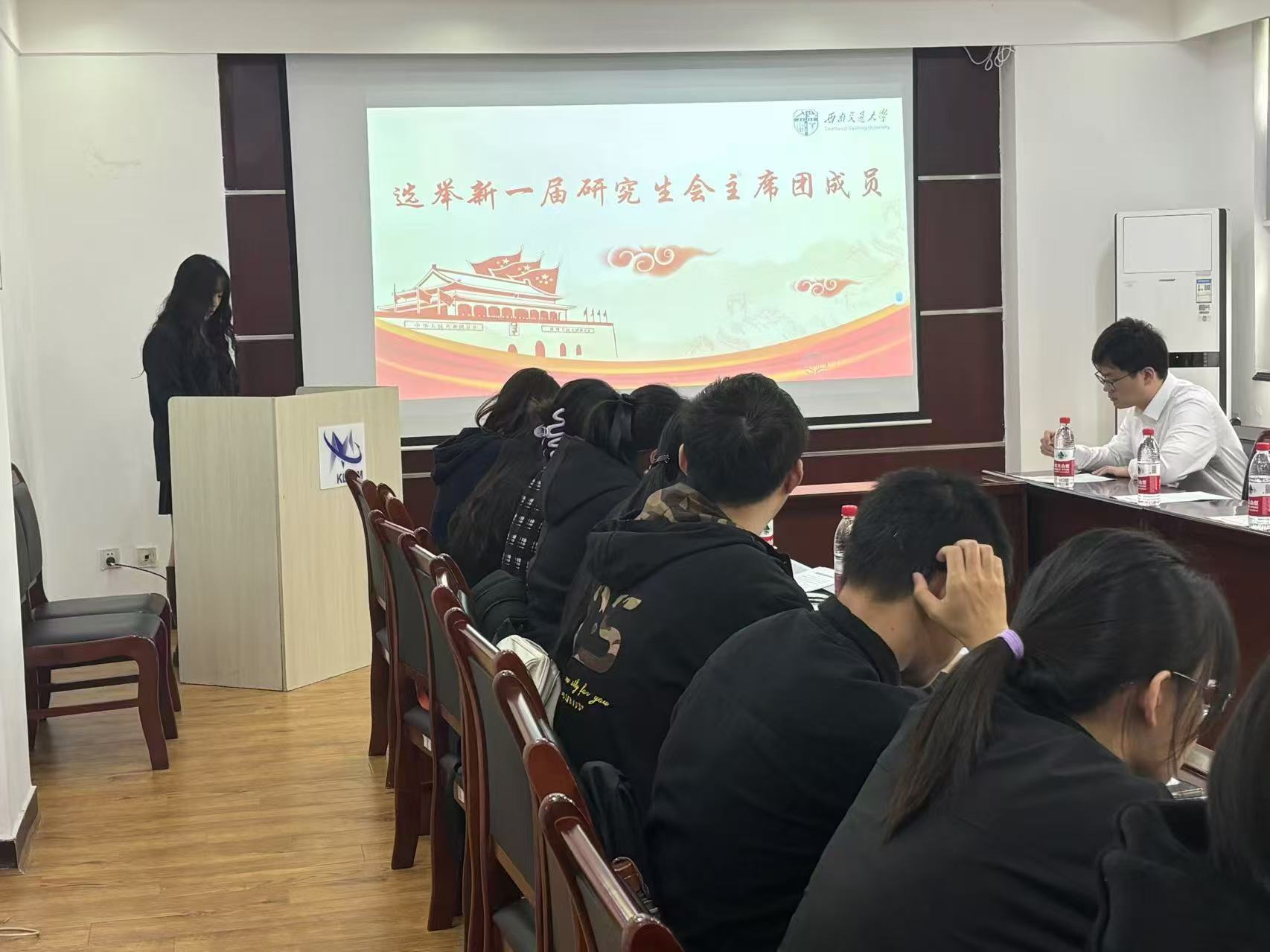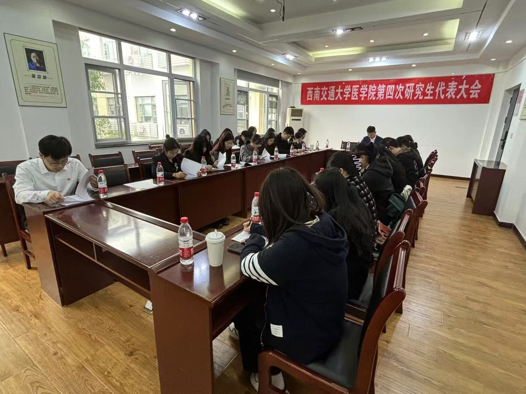 2024年11月8日上午九点,西南交通大学医学院第四次研究生代表大会在九里校区医学院A204会议室举行。会议由康欣冉主持,西南交通大学校研究生会主席雷越,医学院研究生会指导老师韩鹏飞以及第四届研究生代表大会全体代表参加会议。