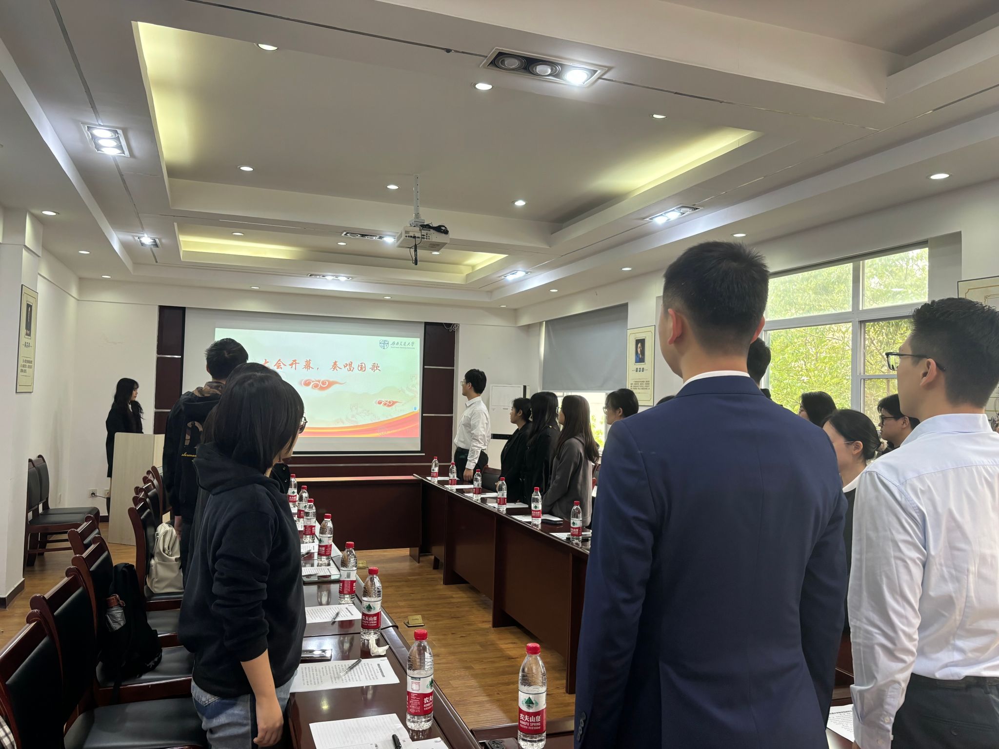 预备会后,西南交通大学医学院第四次研究生代表大会在雄壮的国歌声中拉开帷幕。
