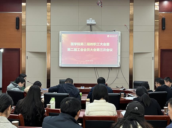 12月4日,医学院第二届教职工大会暨第二届工会会员大会第三次会议在九里校区1号综合楼2019会议室隆重召开。会议由医学院副书记于楠主持,医学院全体教职工出席会议。