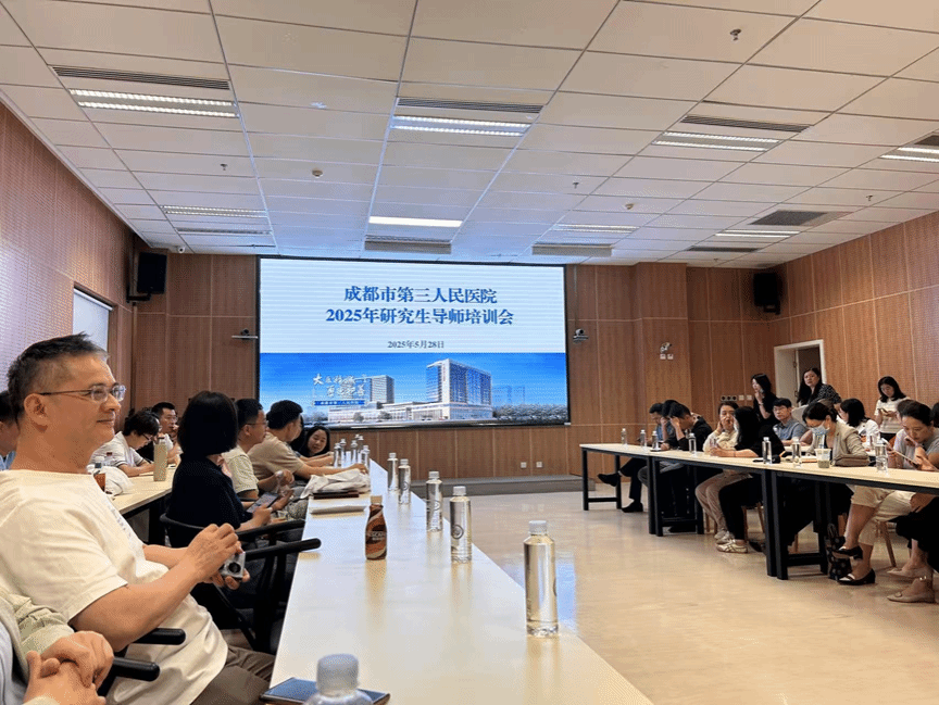医学院副院长冷永祥、党委副书记于楠,特邀茅以升学院党总支书记李毅,共同赴附属医院成都市第三人民医院开展此次导师培训。培训会由成都市第三人民医院科教部何莉部长主持,成都市第三人民医院副院长兼医学院副院长李暄出席,60 余名兼职导师参与培训。