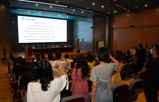 徐俊波对于新同学们的未来寄予厚望,希望大家能用敢于创新的勇气、开放包容的胸怀、涵养人文的情怀,成为将来攻克医学难关,造福百 姓健康福祉的储备力量。同时,相信在“精勤求学、敦笃励志、果毅力行、忠恕任事”的校训指引及导师们的尊尊教诲下,必将拥有更加精 湛的医术、更加成熟的人格,在发展中乘风破浪,展现新时代医学生的新风采。