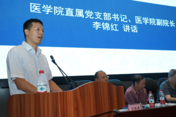 李锦红代表学院欢迎新同学为正在发展中的学院注入了新的力量,提示学生从现在开始努力学习,刻苦专研,持之以恒,坚持到底,并借面 对困难时的态度和方式的话题勉励同学们坚定理想信念,树立崇高使命。同时,李锦红借第36个教师节到来的机会,向全体参会老师转达了 学校党委王顺洪书记、杨丹校长对所有为学校建设与发展、为学生们成长成才无私奉献的老师们的感谢。最后,全体医学新生集体宣读医学生誓词,开学典礼第一阶段在铿锵的医学生誓言中结束。