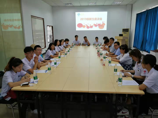 2019年8月23日下午15:00,医学院举行2019级新生座谈会。医学院直属党支部书记李锦红、副院长高峰、教师代表雷涵、辅导员李丹阳及学院研究生会主席岑黔鸿参加了座谈会。