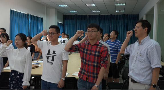 会议最后,医学院直属党支部全体党员在支部宣传委员杨利文的带领下,重温入党誓词。进一步激发了党员政治热情,激励全体党员“不忘入党初心,牢记党员使命”,让入党初心伴随党员成长。