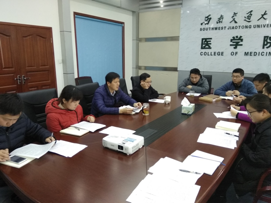 2019年2月28日14:00点, 医学院直属党支部召开医学院2019年度第二次中心组(扩大)会议,学院主要领导和教职工参加本次会议,会议由党支部书记李锦红主持。会议主要传达了西南交通大学新学期务虚会主要会议精神、党委书记例会精神,并就学校和学院2019年度主要工作进行了通报和讨论。
