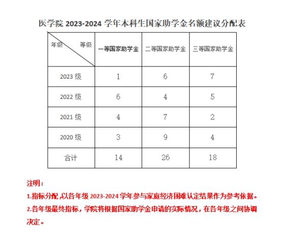 根据教育部相关文件精神,结合学校工作实际,现启动我院2023-2024学年本科生国家助学金评选工作,具体事宜通知如下:
