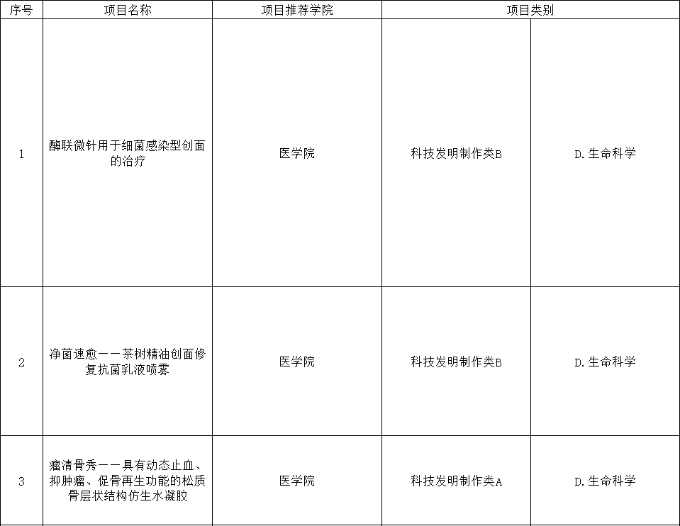 经自愿报名、材料资格审核,学院专家评分,现公布医学院2025年“挑战杯”创业计划竞赛院内项目遴选结果: