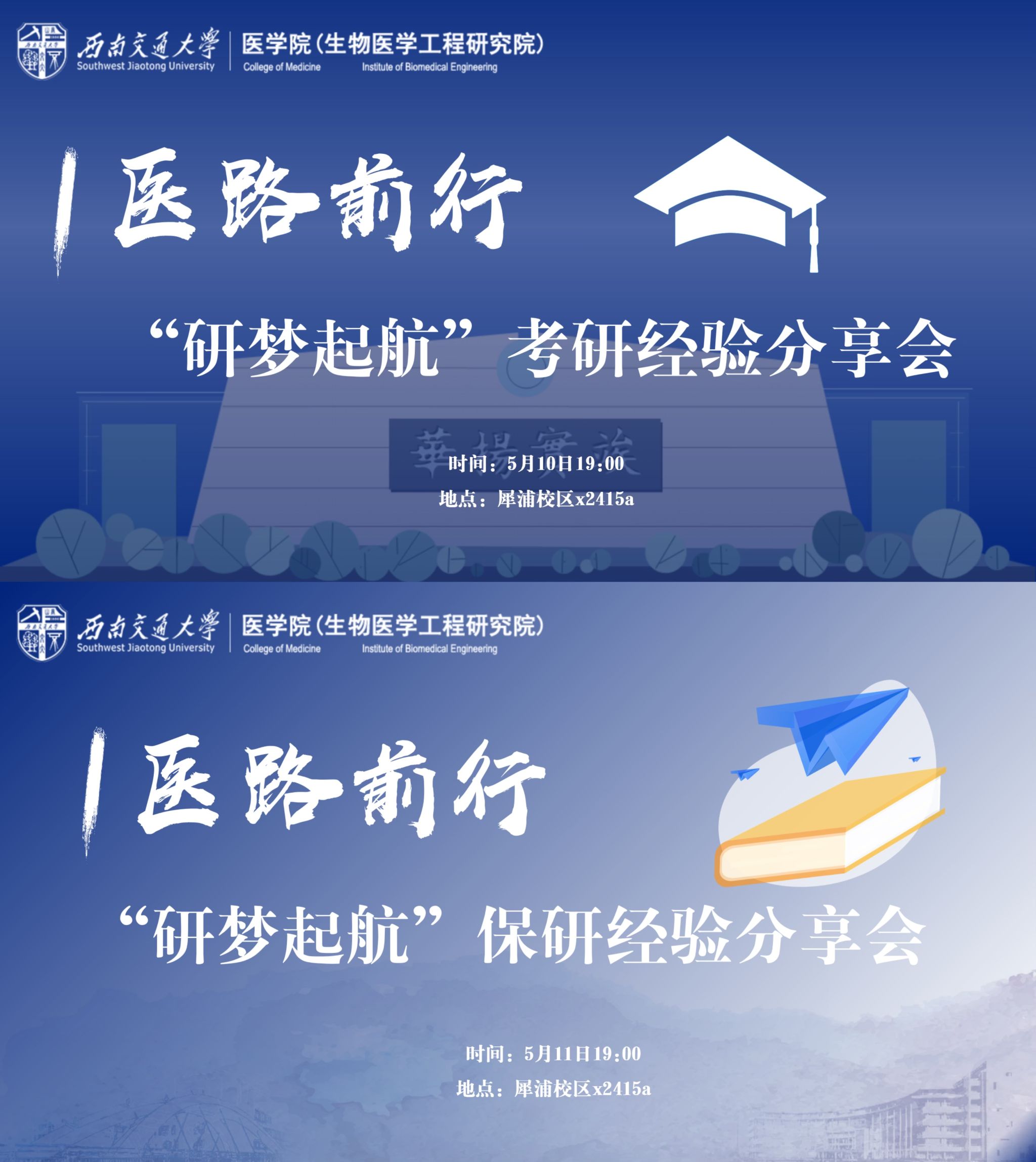 在生物医学工程领域深耕,一直是许多医学院学子的梦想追求。为了助力这些有志之士更清晰地规划未来的学术生涯,医学院精心筹划了“医路前行”系列活动之“研梦起航”考研、保研经验分享会,于5月10日至11日在x2415a举行。本次活动吸引了众多即将踏上考研或保研征途的医学院学生踊跃参与,共同交流心得,汲取前行动力。