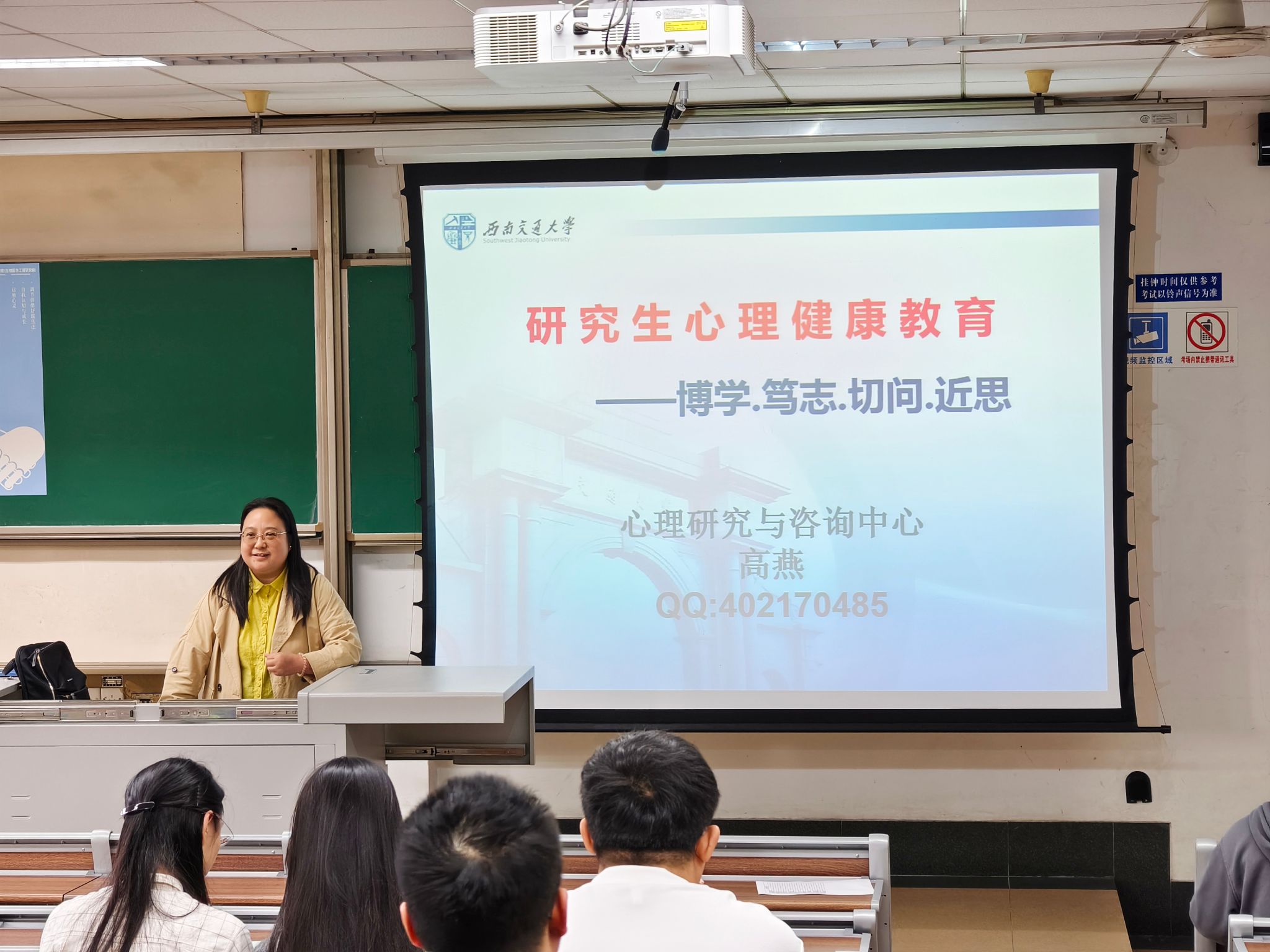心理健康是学术成功的基石。一个健康的心态能够帮助学生更好地应对压力,激发创造力,提升学习效率。2024年11月1日下午16时30分许,医学院邀请到西南交通大学心理研究与咨询中心的高燕老师为2024级全体研究生开展了一场以“倾听内心的声音”为主题的心理健康讲座,帮助同学们在繁忙的学业中,保持积极健康的良好心态。