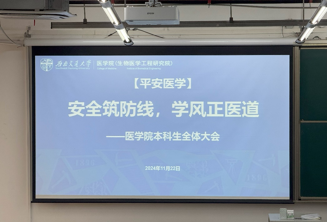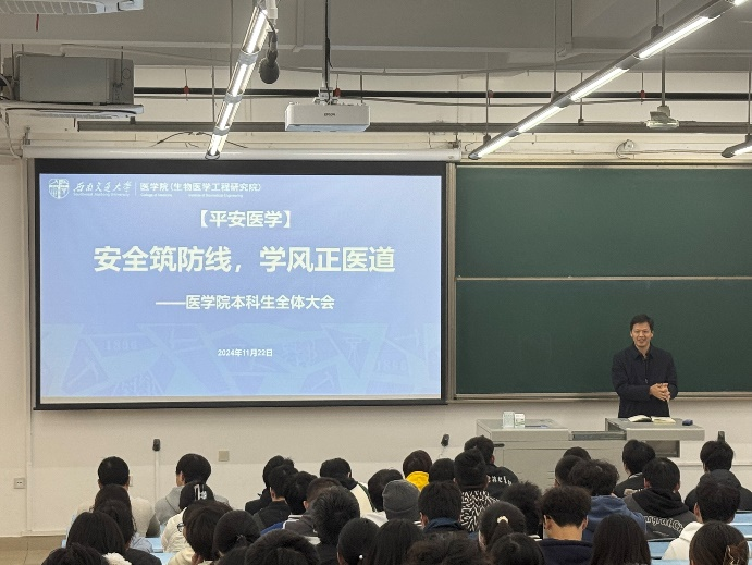 11 月 22 日下午,医学院开展本学期首次本科生全员大会。本次会议是医学院“平安医学季”活动之一,旨在进一步提高学院学生安全意识,强化校园安全教育与管理。