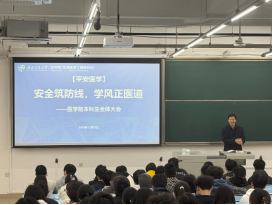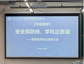 11月22日下午,医学院召开了本学期首次本科生全员大会,作为“平安医学季”活动的一部分,旨在提升学生的安全意识和校园安全教育。
