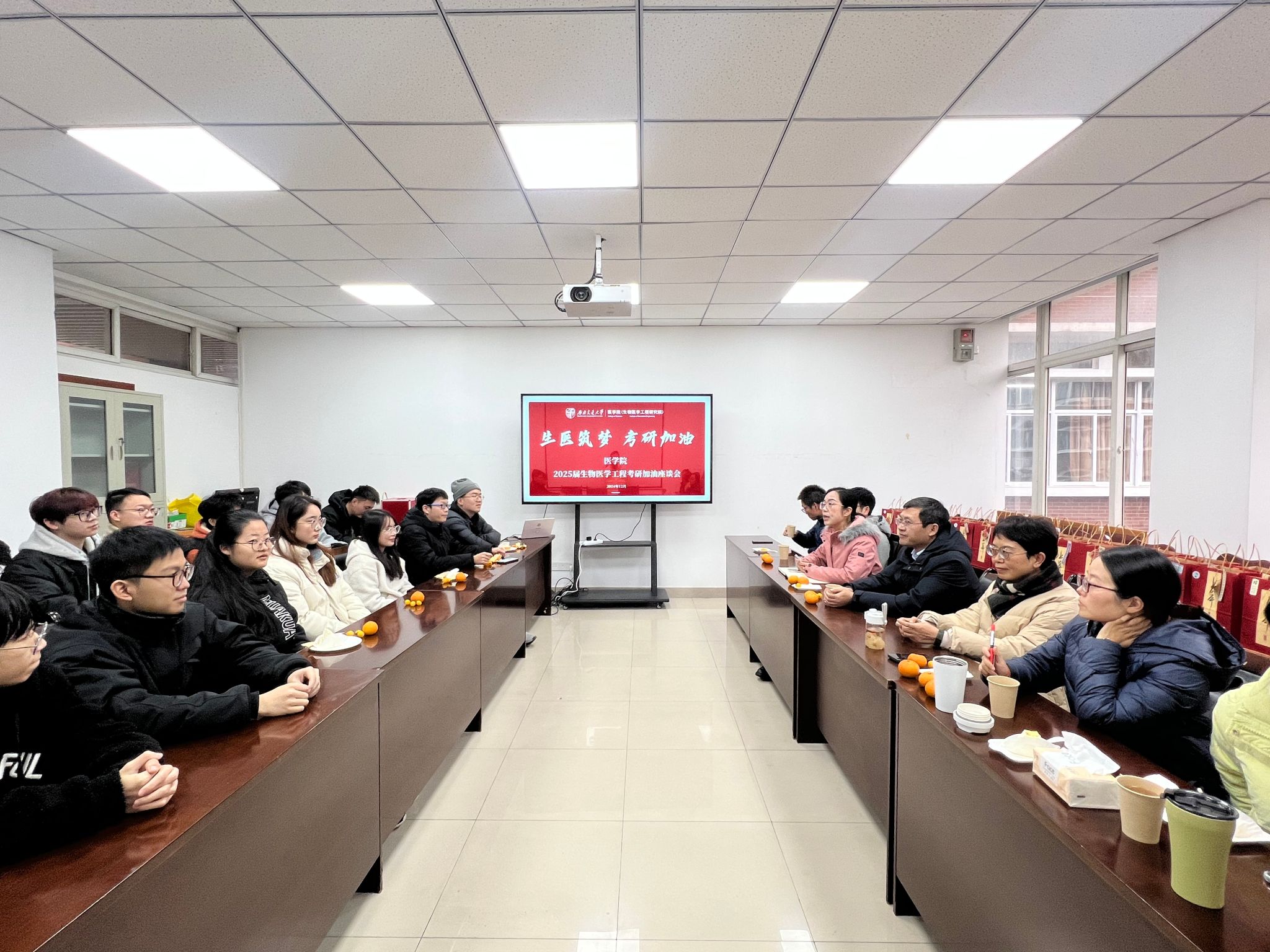 12月9日下午2点半,医学院在学院会议室x2415a举行了“医学院生医2025届考研加油座谈会”。此次活动旨在为即将参加考研的2025届生物医学工程专业学生加油打气,提供考前指导和心理支持。医学院院长周绍兵、党委副书记于楠、本科教学主管苟雪、生物医学工程本科系主任向韬,以及2021级班导师屈树新、王进、周杰、汪琴出席了本次活动,全体2025届考研同学积极参与。活动由党委副书记于楠主持。