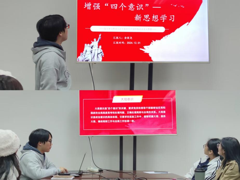 2024年11月27日,在医学院A座215会议室,领学人金煜尧同学围绕“四个意识”,即政治意识、大局意识、核心意识和看齐意识向同学们做了深入讲解。他谈到,在复杂多变的国际国内环境中,作为新时代的青年学子,必须不断提高自身的政治敏锐性和鉴别力,始终做到心中有党、心中有民、心中有责、心中有戒。此外他还结合实际案例,生动形象地阐释了如何在日常学习生活中践行“四个意识”,树立正确的世界观、人生观、价值观,为个人成长和社会进步贡献智慧和力量。
