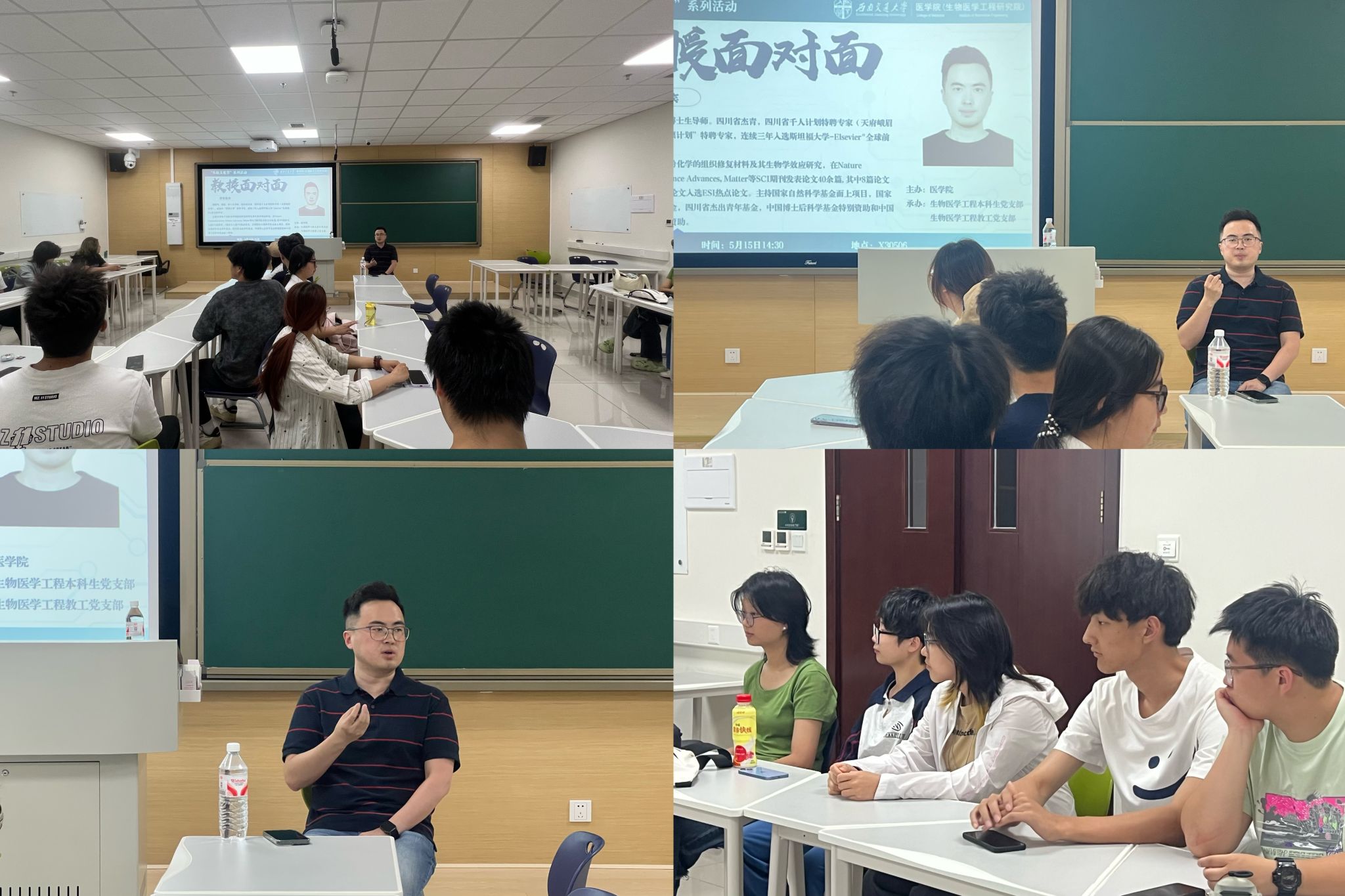 5月15日,由生物医学工程教工党支部、生物医学工程本科生党支部联合举办的“教授面对面”活动第五期在X30506教室顺利举行。活动特别邀请学院“青年讲师团”成员谢超鸣教授,与本科生展开深入且富有启发性的座谈交流。