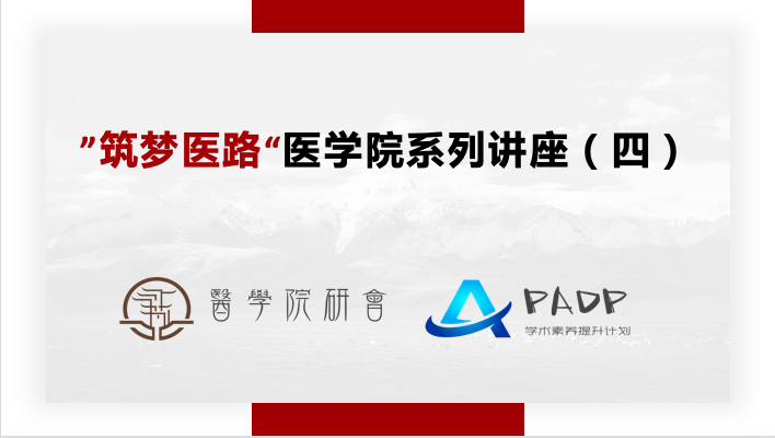 讲座摘要:研究生学习阶段的重要学习内容之一就是学会写学术论文,论文发表也是研究生毕业的必要条件之一。本场讲座嘉宾将从学生角度出发,分享毕业、就业以及论文发表经验,为医学院同学在研究生学习提供帮助。本次讲座也是PADP研究生学术素养提升专项活动,旨在提高研究生学术素养,培养论文写作能力。