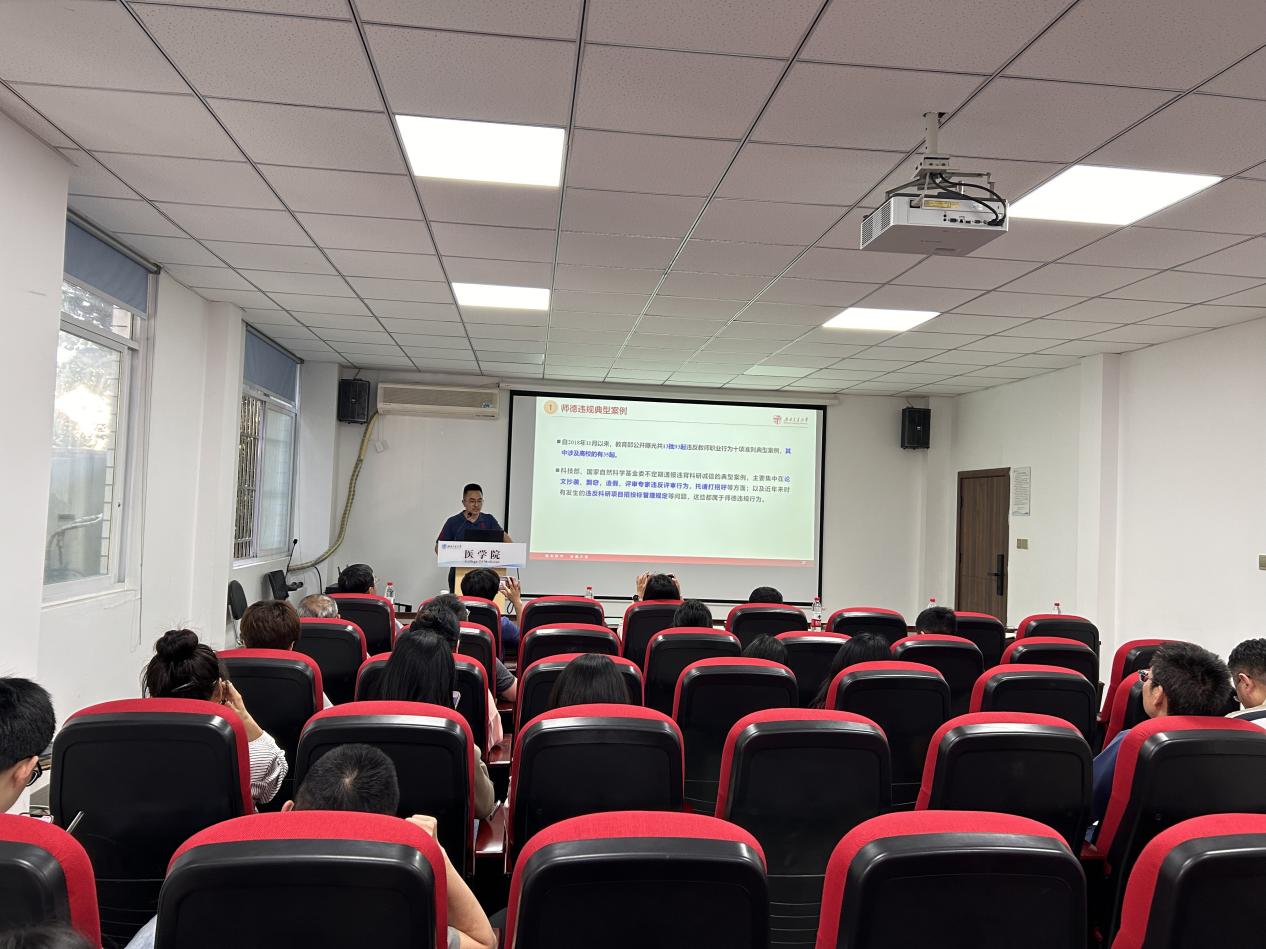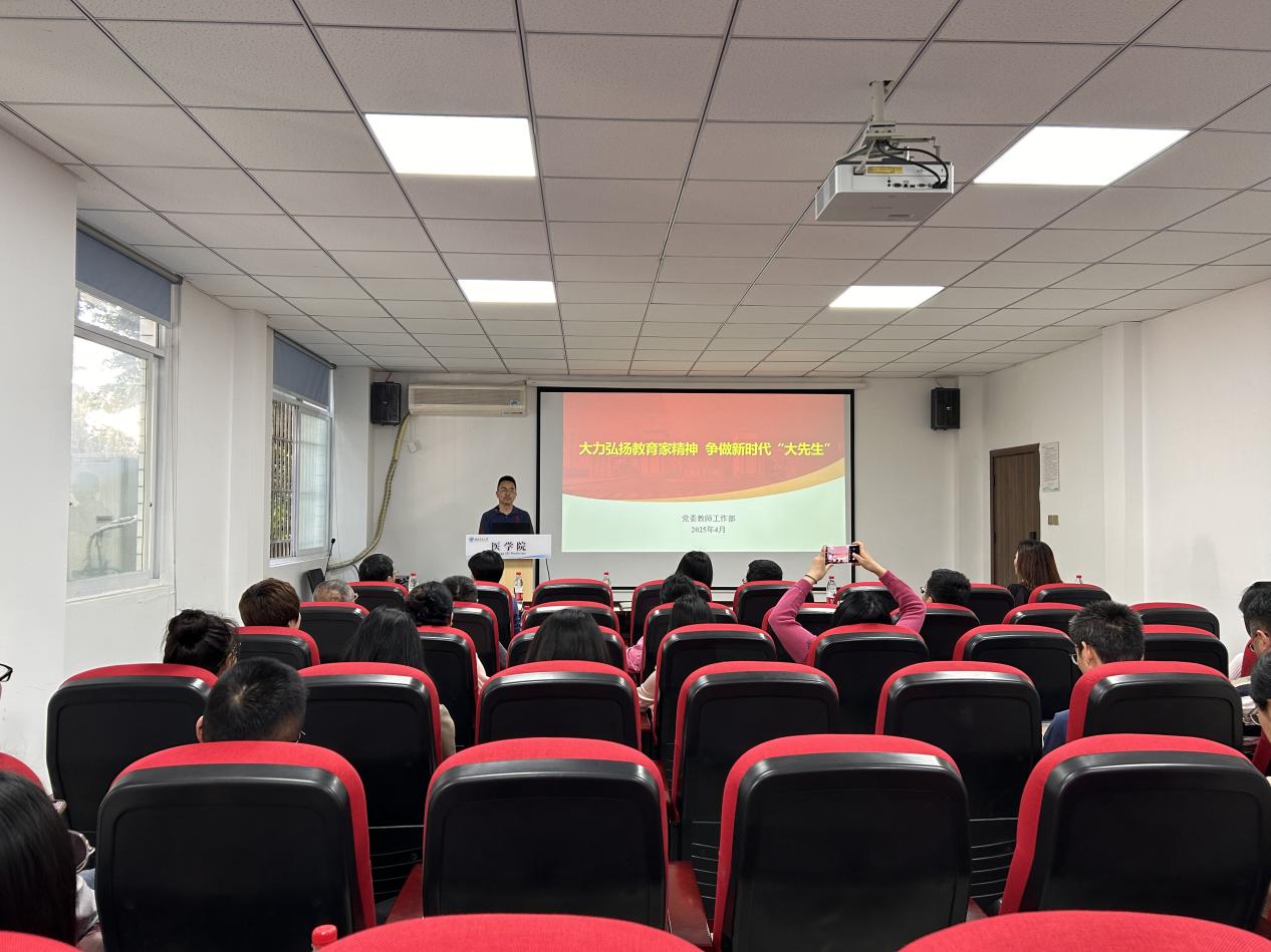 4月17日下午,医学院召开全体教职工大会,邀请学校教工部思政与师德师风建设科科长崔健老师为全院教职工进行了题为《大力弘扬教育家精神 争做新时代“大先生”》的师德师风及警示教育。