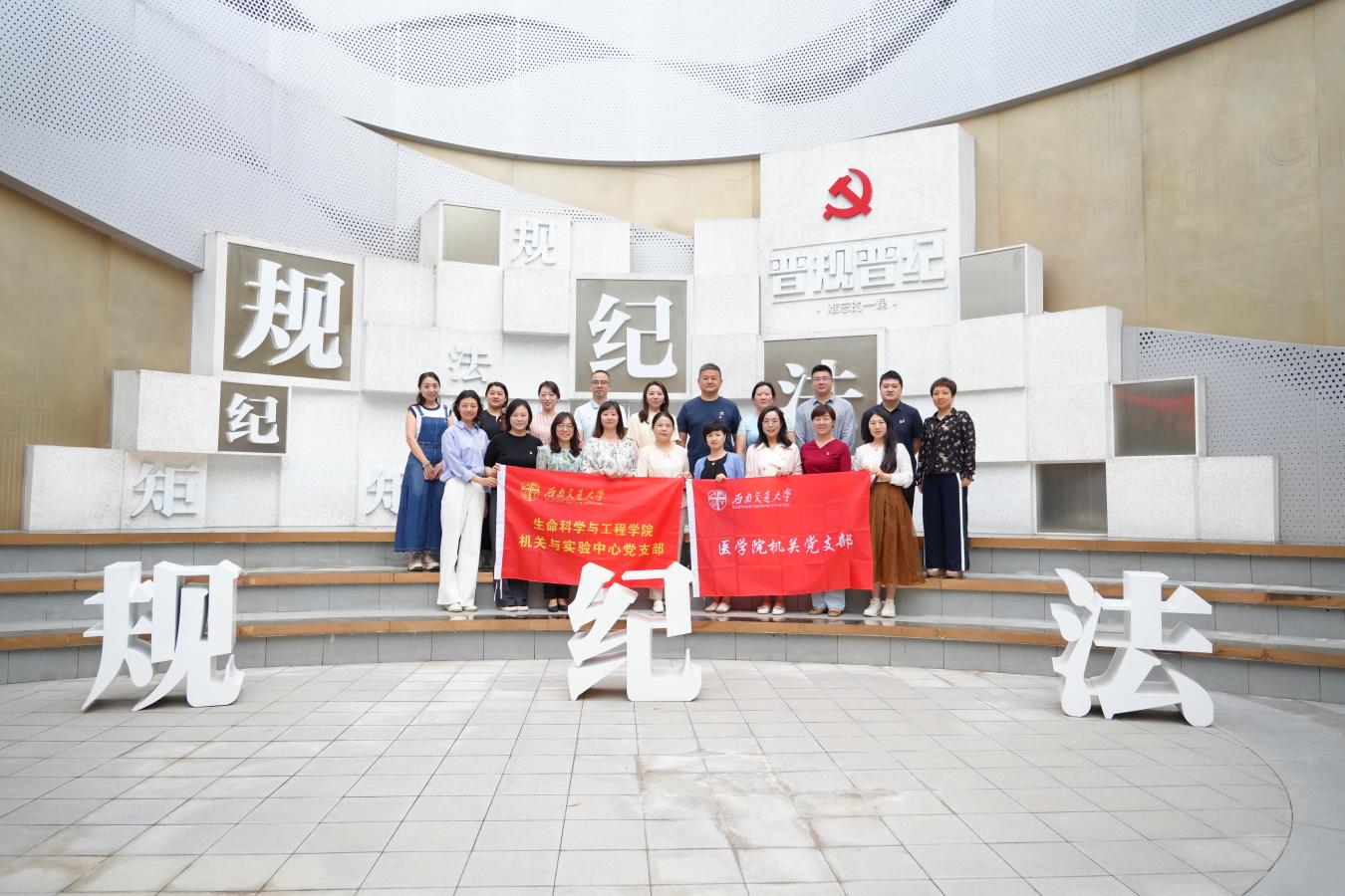 为扎实推进深入贯彻中央八项规定精神学习教育,增强党员领导干部廉洁自律意识,2025年5月6日上午,医学院与生命科学与工程学院党委理论学习中心组及机关党支部全体成员赴普规普纪馆开展联学联建活动。两院中心组成员、机关全体成员及部分师生党员代表参加了学习。
