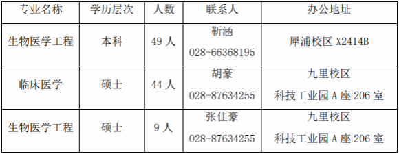 医学院现有生物医学工程系、临床医学系、基础医学系、生物医学工程研究院。有生物医学工程本科专业、生物医学工程(工学)、临床医学和材料科学与工程(生物医学材料)三个一级学科硕士点、材料与化工(生物医学工程)专业型硕士点、材料科学与工程(生物医学材料)一级学科博士点。生物医学工程专业入选四川省一流专业(2022年)和四川省“双一流”建设贡嘎计划学科(2023年)。医学院面向人民生命健康,开展跨学科医学研究,促进生物材料、医学信息、大数据和人工智能等与医学学科的交叉融合,打造先进医疗器械及纳米诊断和治疗药物科学研究基地及复合型高端人才培养基地。
