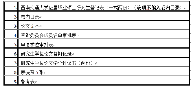 注意:相关表格下载见附件,相关电子材料以学号姓名命名并打包发送至:chenxy@swjtu.edu.cn,以上材料需一同完整提交并全部符合相关要求,方可领取学位档案袋、表决票和聘书。