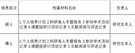 一、10月25日至11月20日,22级、23级、24级博硕士研究生自查本人“学业档案”建档和存档、各环节材料的完成情况。材料清单见下表: