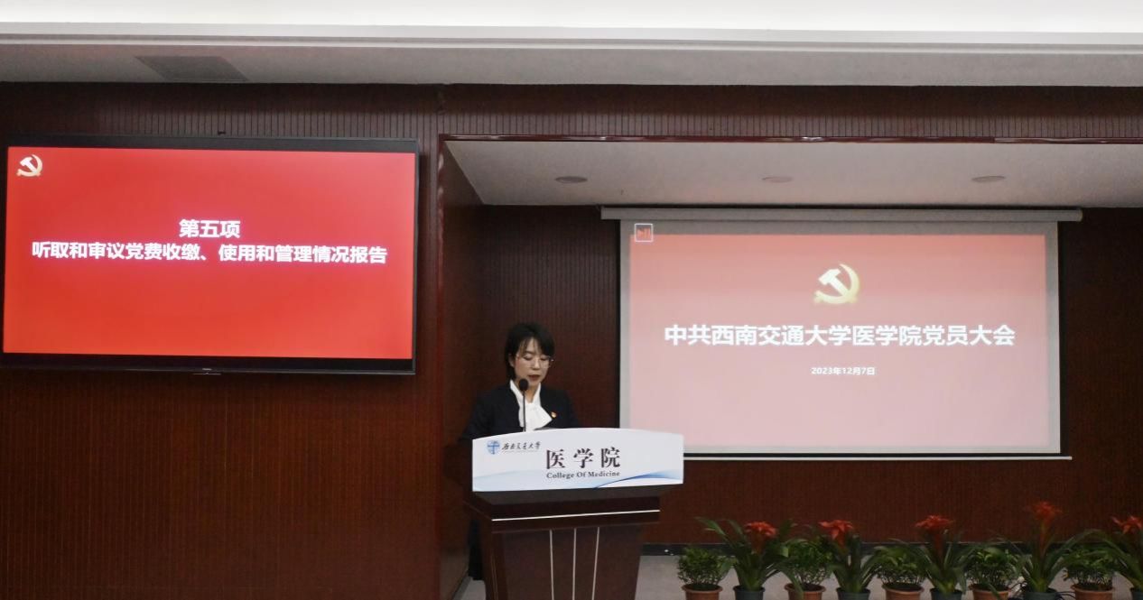 大会书面审查了中国共产党西南交通大学医学院纪律检查委员会工作报告。于楠同志代表学院党委作党费收缴、使用和管理情况报告。