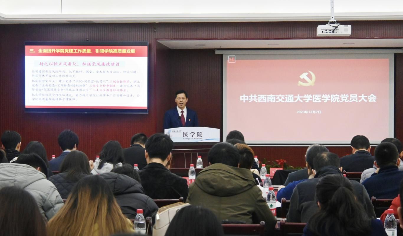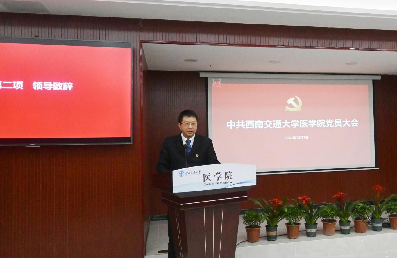 12月7日下午,中国共产党西南交通大学医学院党员大会在九里校区4号综合楼4102交流厅隆重召开。学院全体师生党员参加了此次会议,会议由学院党委副书记于楠主持。学校党委组织部副部长许军华,医学院院长周绍兵,附属医院(成都市第三人民医院)副院长兼医学院副院长李暄,医学院原副院长、民建会员翁杰及学院各民主党派教师代表出席了此次会议。