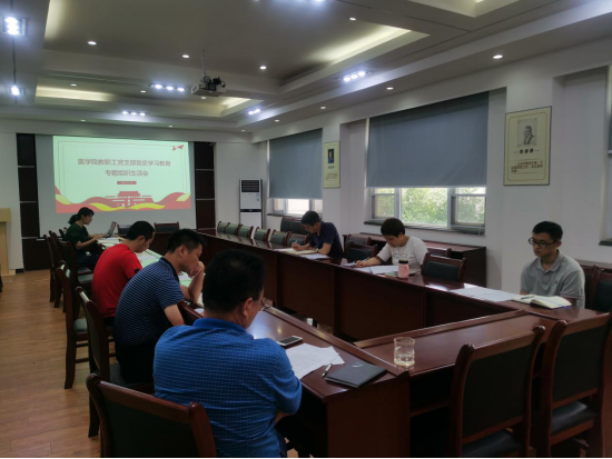 2021年7月15日下午,医学院教职工党支部在A204会议室召开了党史学习教育专题组织生活会,支部全体党员参加,党支部书记芦莹华同志主持了会议。