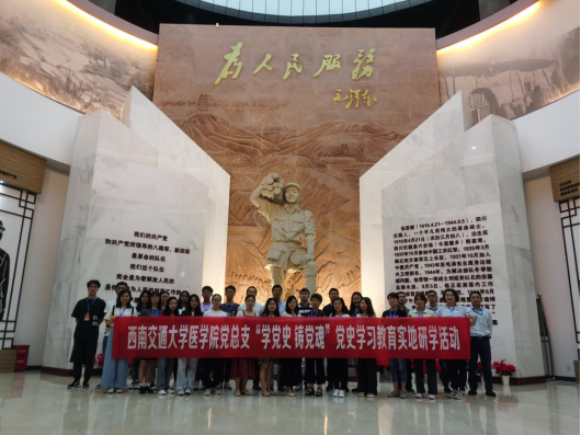 为庆祝中国共产党建党100周年,西南交通大学医学院党总支于6月4、5日赴“两德故里”四川省仪陇县开展了为期2天的党史学习教育实地研学活动。医学院党总支书记李锦红、医学院全体教师以及附属医院党员代表、学生党员代表、积极分子代表等共计30人参与了本次活动,共同学习“两德精神”、回顾党的历史、感悟初心使命、汲取奋进力量。