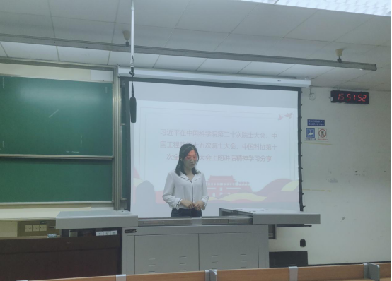 6月10日下午,医学院全体党员在九里校区逸夫馆4209教室对讲话内容进行了集中学习分享,教职工党支部党员代表蔡俊俊老师进行了领学。蔡俊俊老师从我国科技创新取得新的历史性成就、科技创新方面存在的问题及举措及习总书记对院士们(科研工作者们)的四点希望来分享了讲话的内容。习近平总书记的这一重要讲话,为我国科技发展指明了方向,为科研工作者们追求真理创造了条件,为青年学子们勇攀高峰指明了方向。