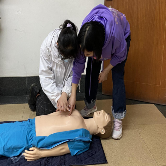 最后,由同学们纷纷上台体验心肺复苏和海姆立克的现场操作,为活动画上了圆满的句号。