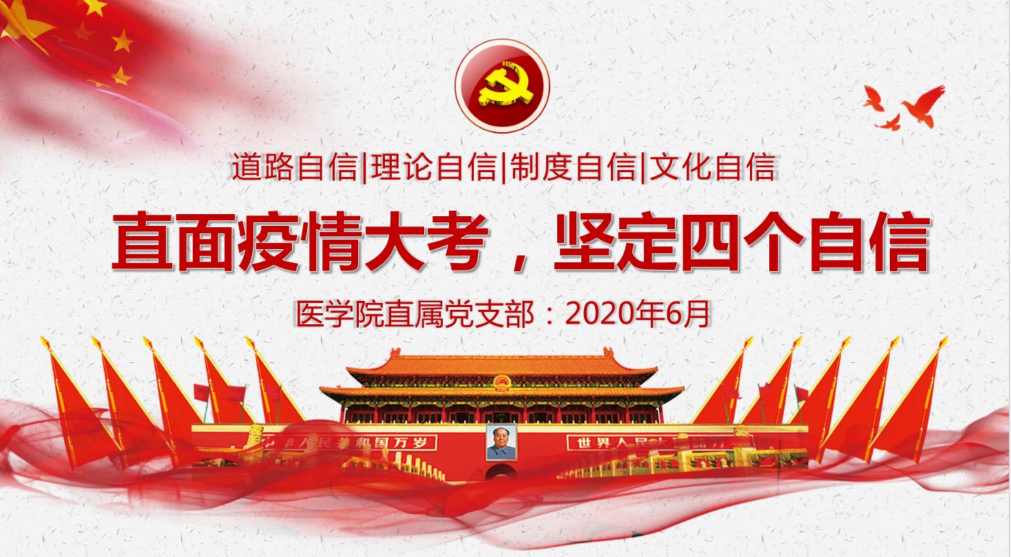爆发于去年12月份的新冠肺炎疫情,是一场全世界共同面对的重大灾难。到目前,在14亿人口的我国,疫情防控取得重大阶段性成效,企稳向好的态势持续巩固和加强,社会生活秩序逐步恢复正常,经济加速恢复,这是我们发挥中国特色社会主义制度优势、坚定“四个自信”的必然结果。在此背景下,医学院直属党支部于2020年6月30日通过钉钉网络平台召开题为“在疫情大考中坚定四个自信”的专题微党课,微党课由直属党支部书记李锦红主讲。